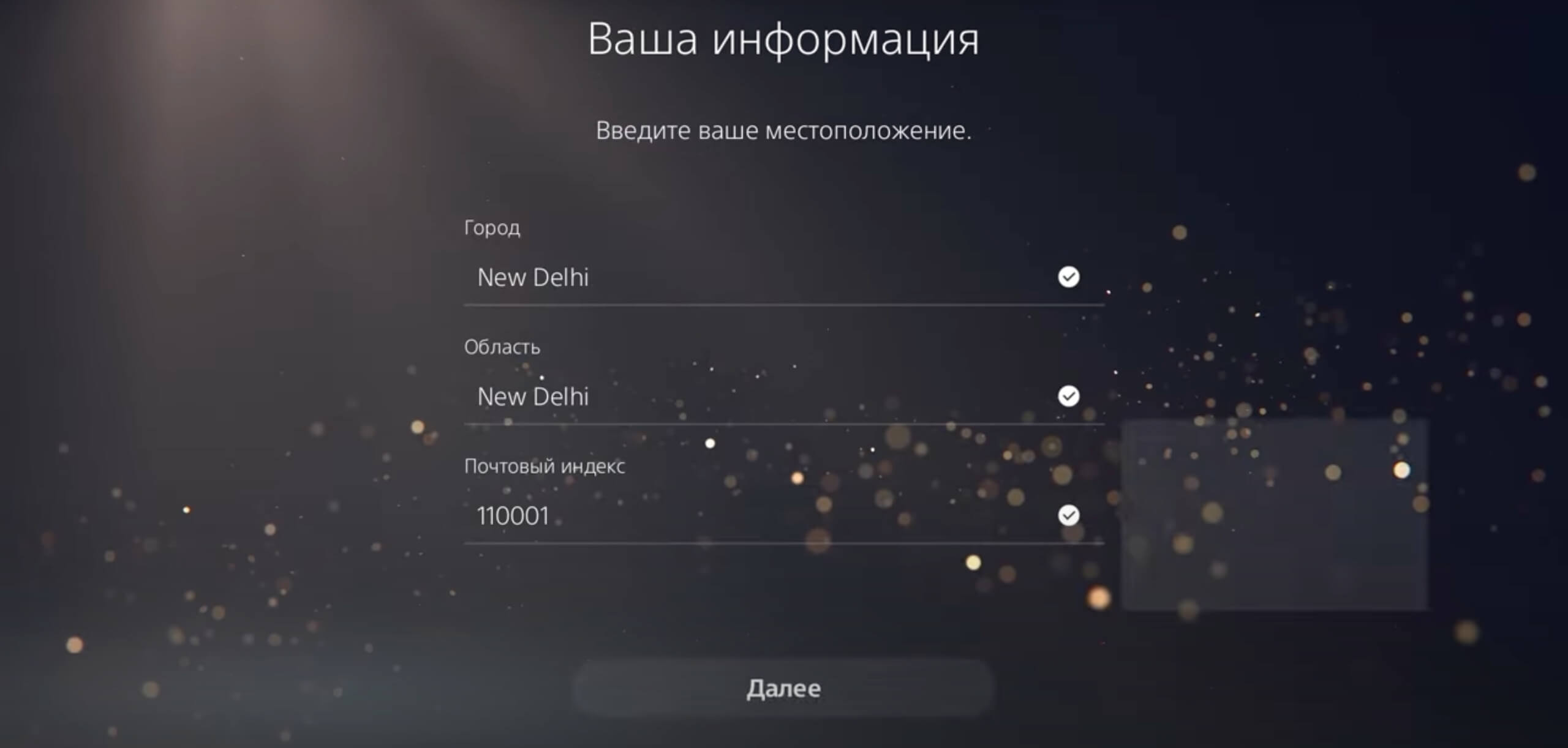 2. В строке «Страна/Регион» выберите «India». Язык оставьте английский – впрочем, выбора всё равно не будет. Если что, интерфейс консоли останется на русском языке. Нажмите Next.